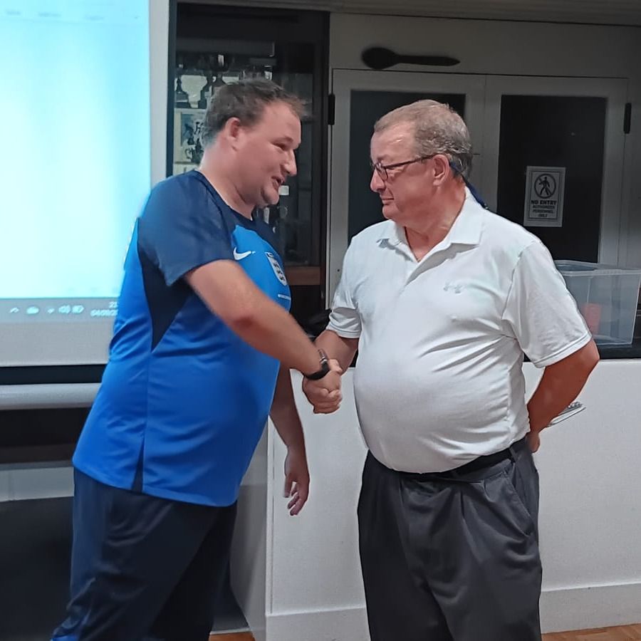 Dane Johnson talking to Les Johnstone (Life Vice President)